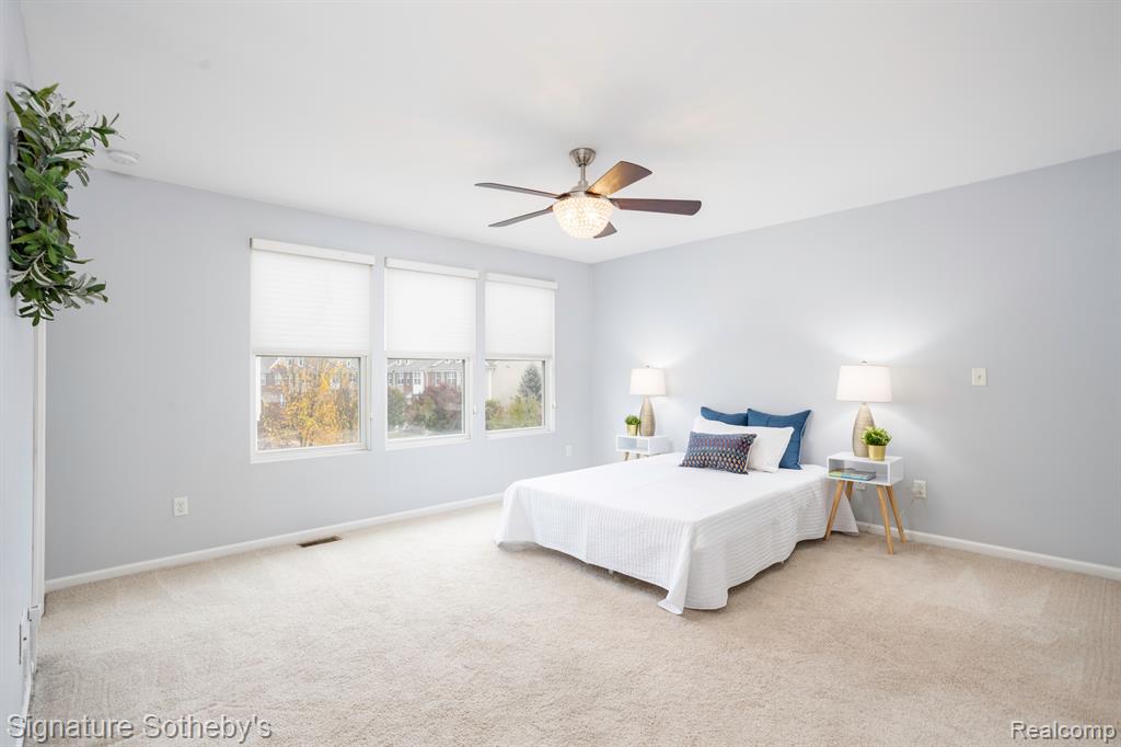 This well-maintained Liberty Park condo offers a comfortable and stylish living space. The main level features a sunny kitchen with hardwood floors, granite countertops, stainless steel appliances (including a gas range), and a tile backsplash. The living room boasts modern lighting and a stylish faux stone wall. A private balcony, perfect for morning coffee or evening relaxation, and a convenient powder room complete this level. Upstairs, you'll find two primary suites, each with a walk-in closet. Choose between a spacious shower or a relaxing tub, both with granite countertops. The lower level provides access to the two-car garage with side-by-side parking, a laundry room, a mud room, and ample storage. Nest thermostat, Ring doorbell, and a hose bib in the garage for convenience. Enjoy the community pool and playground just a short walk away. Nearby bike and hiking trails at Lakeshore offer outdoor recreation opportunities. Conveniently located near 12 Oaks, I-696, I-275, I-96, and numerous offices and restaurants. Situated in the desirable Novi School District and Parkview Elementary attendance area. Photos from prior to leasing. |